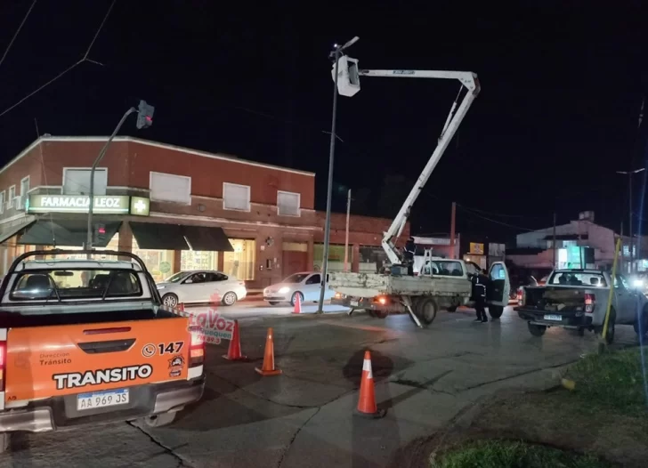 Una cuadrilla de operarios municipales están reparando las columnas del alumbrado público en sectores de la avenida 75.
