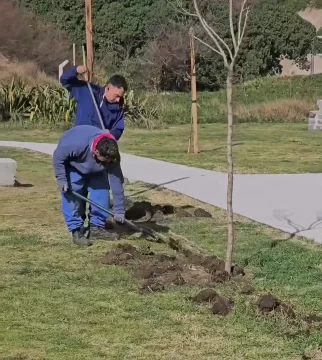 El Consorcio de Gestión de Puerto Quequén comenzó con las tareas de instalación del sistema de riego en la plaza 3 de Agosto, de manera de poder regar los más de 140 árboles que allí plantaron