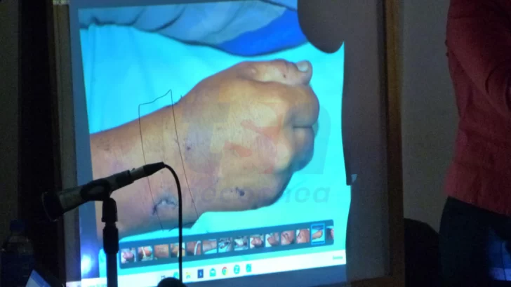 “Busqué la marca del ahorcamiento y no la tenía, sólo tenía la marca de donde lo habían abierto para hacerle la autopsia, entonces le pedí a la mamá si me autorizaba a sacar fotos del cuerpo” expresó la mujer, asegurando que el cuerpo presentaba “un golpe en la cabeza, una abertura en el costado de donde salía líquido, golpes en el mentón y las cejas y me llamó mucho la atención el hueso del cráneo que estaba como corrido de lugar”.