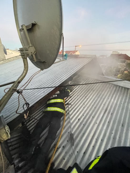 Las imágenes son precisas y la labor de los servidores público se destaca en medio de la tragedia. Debieron subir al techo de chapa para atacar el fuego y uno de ellos cayó y terminó hospitalizado.
