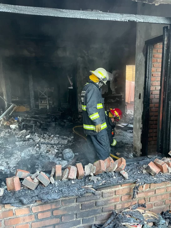 Un departamento, ubicado en el fondo de una vivienda, terminó totalmente destruido a raíz del incendio que se registró esta mañana. Un bombero resultó con luxación de clavícula al caer del techo mientras intentaba extinguir las llamas.