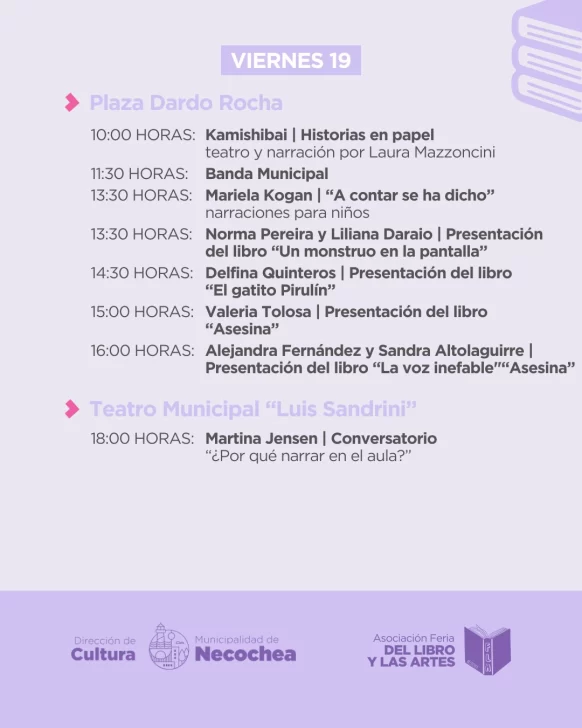 El viernes 19 habrá actividades desde las 10 en la carpa de la plaza Rocha y por la tarde, también a las 18, el Teatro Municipal abrirá sus puertas para un conversatorio a cargo de Martina Jensen.