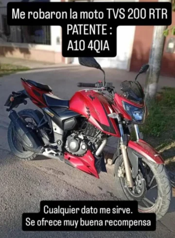 El dueño ofrece recompensa ante cualquier data. el teléfono de contacto es TVS 200RTR.