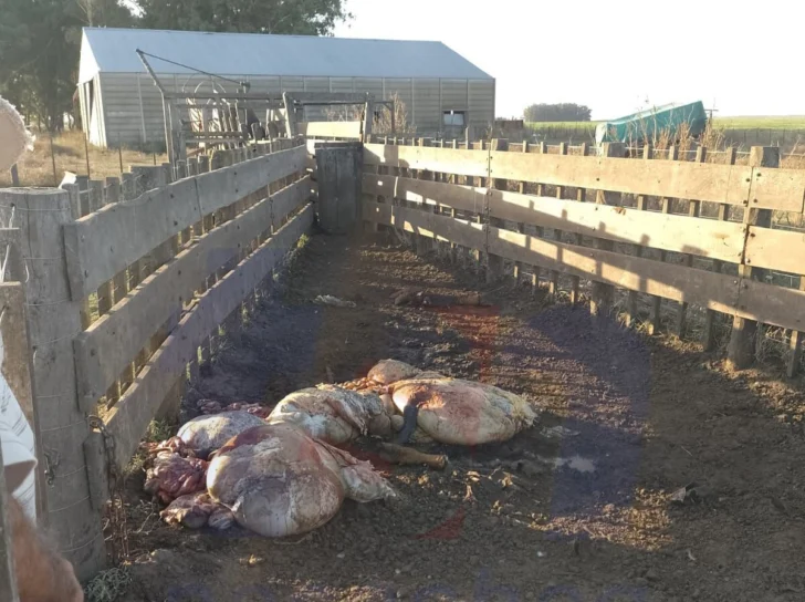 Al recorrer el predio, en el sector del corral se encontraron vísceras y cuatro patas, constatándose la faena clandestina de cuatro bovinos: una vaca de aproximadamente 500 kilos y tres terneros de unos 180 kilos cada uno.