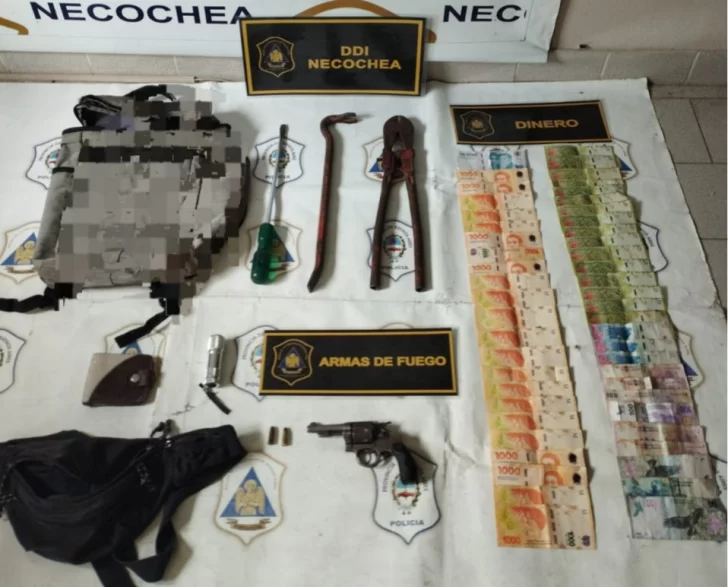 Fernández llevaba un revólver calibre 32, con dos cartuchos, mientras que en una mochila llevaba elementos tales como barreta, destornillador, linterna y dinero en efectivo.