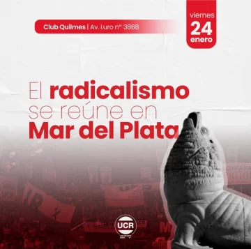 Desde el radicalismo provincial hicieron un llamado a todos los dirigentes, afiliados y militantes del centenario partido, a un acto que tendrá lugar el 24 de enero a las 19 hs. en el Club Quilmes de Mar del Plata.