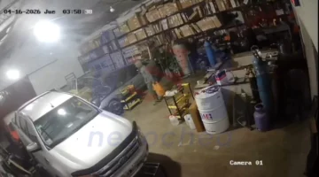 Las imágenes captadas por el sistema de vigilancia muestran el momento exacto en que los sospechosos acceden al taller y concretan el robo.