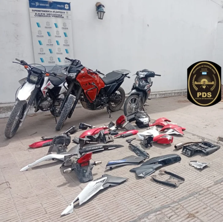 Un allanamiento altamente positivo realizado en la ciudad de Necochea permitió el secuestro de varias motocicletas con pedido de secuestro activo, motopartes y otros elementos de interés para la investigación, además de la aprehensión de tres personas, dos de ellas menores de edad.