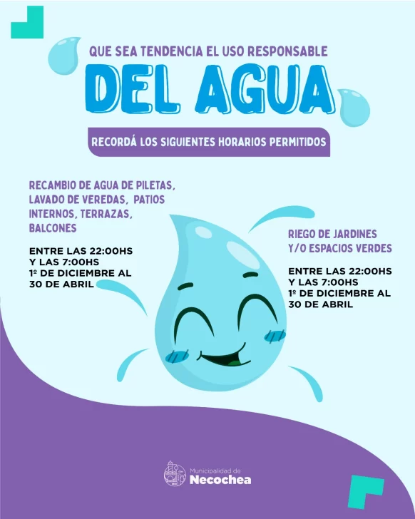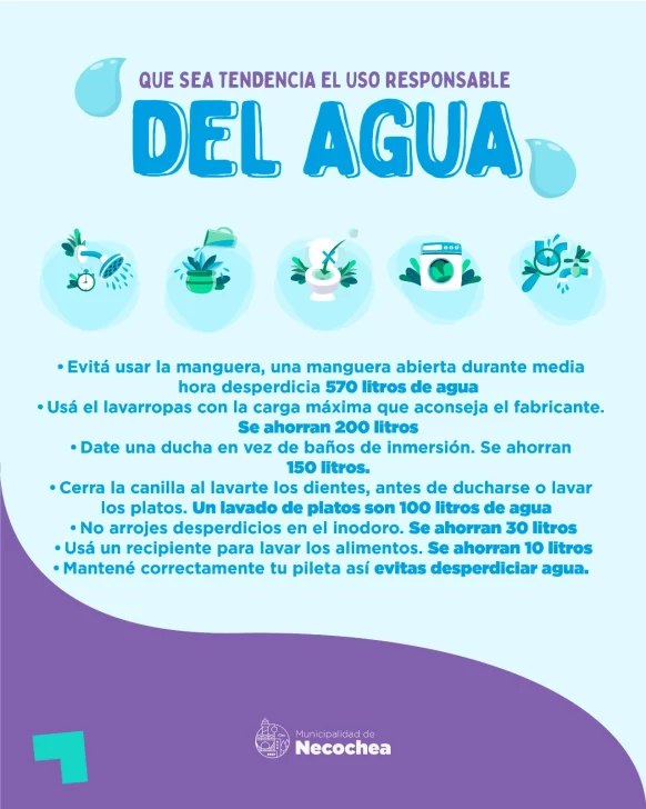 En ese sentido, puntualizó que las principales recomendaciones están asociadas a los horarios: “El mayor cuidado se debe dar en los usos que no son de consumo, sino de cuestiones como el riego de parques o lavado de veredas por ejemplo, respecto a lo cual recomendamos ajustarse a los horarios permitidos por el municipio y hacemos principal foco en eso”.