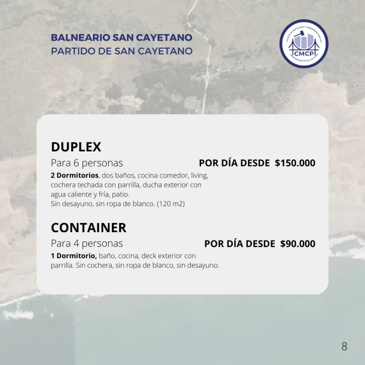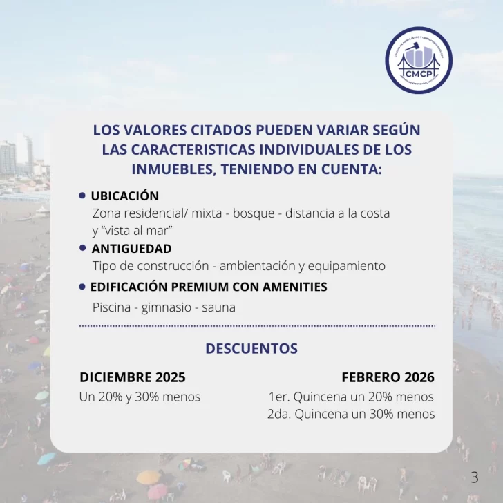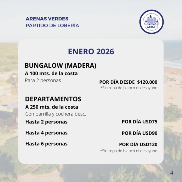 El Colegio de Martilleros aclara que estos precios no incluyen servicios adicionales como ropa de cama o desayuno, salvo que el alojamiento lo especifique.