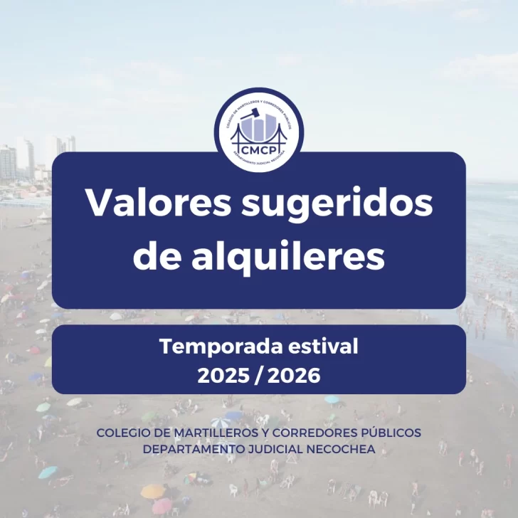 El Colegio de Martilleros de Necochea dio a conocer los precios de referencia para los alquileres temporarios en la próxima temporada de verano.