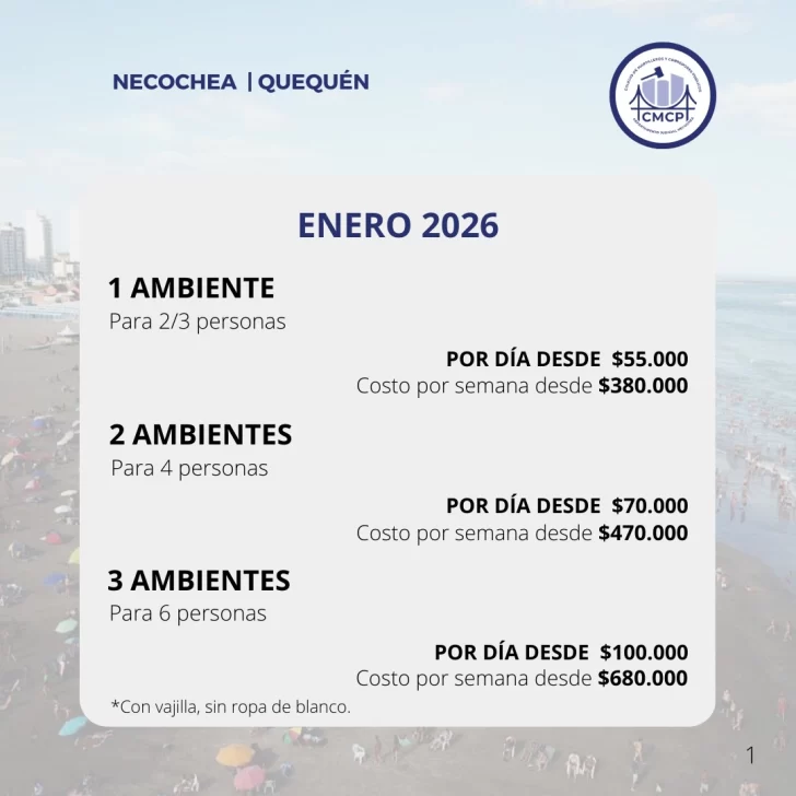 Los valores, que corresponden a la temporada 2025/2026, buscan orientar a los turistas que elijan Necochea y Quequén como destino para sus vacaciones.