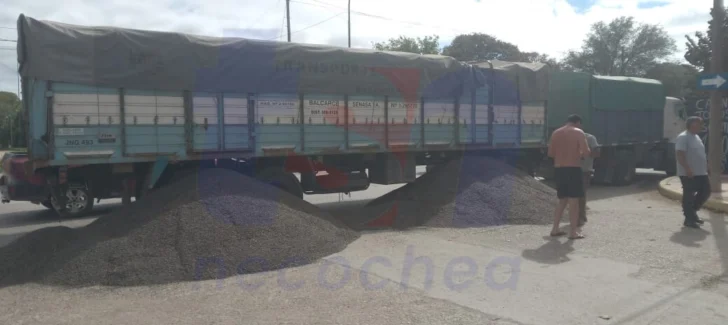 Producto del fuerte impacto, el camión sufrió daños en su estructura de carga, lo que provocó que una importante cantidad de cereal quedara desparramada sobre el asfalto, bloqueando parcialmente la circulación en una zona de alto tránsito logístico.