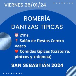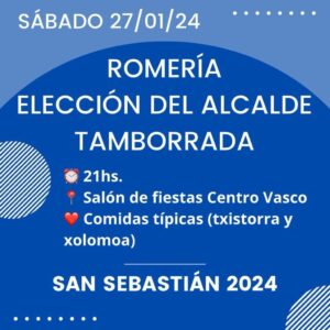 Hoy desde las 20 se inician los festejos de San Sebastián 2024, de la colectividad Vasca.