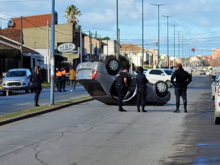 Por motivos que son materia de investigación, un Renault Logan quedó con las cuatro ruedas para arriba y, como consecuencia, el conductor debió ser trasladado al hospital con algunos golpes, pero leves.
