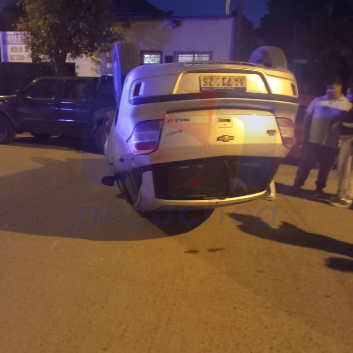 Por motivos que son materia de investigación, el conductor del Agile perdió el control de su unidad e impactó contra la parte trasera del Fiesta. Producto de la colisión y la inercia de la maniobra, el vehículo gris terminó volcado sobre su techo en medio de la calzada.