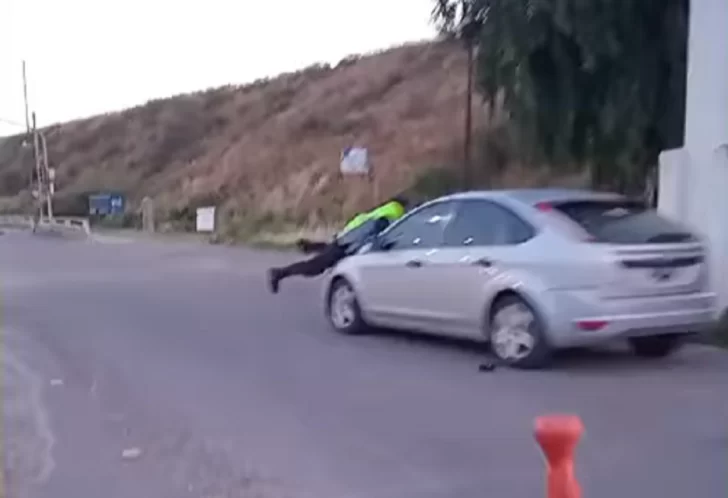 Esto no le importó al conductor y aceleró de todas formas. Una persona que vio toda la escena sacó su celular y llegó a filmar el momento justo en el que el vehículo avanzaba con el oficial encima del capot.