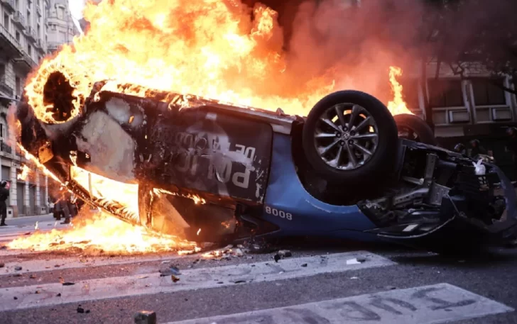 El operativo de las cinco fuerzas federales logró relevar una gran cantidad de daños en los alrededores del Congreso. Los manifestantes dieron vuelta y prendieron fuego un patrullero de la policía de la ciudad de Buenos Aires.