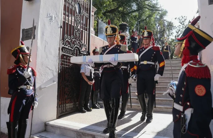 “El sable fue robado dos veces por la Juventud Peronista”, remarcó Milei, y al mismo tiempo señaló que esa pieza “es el símbolo material más poderoso” de la Nación”, durante el acto que encabezó en el Campo de la Gloria en San Lorenzo, donde ratificó y justificó el traspaso de esa reliquia hacia el Regimiento de Granaderos a Caballo, ubicado en el barrio porteño de Palermo.