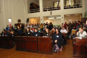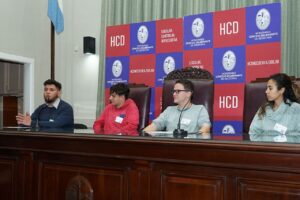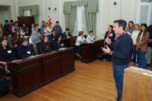Los estudiantes fueron recibidos por el jefe comunal Arturo Rojas y el titular del cuerpo legislativo, Guillermo Sánchez, acompañados por ediles de diferentes bloques, la directora de Educación, Mariela Cellerino y la subdirectora de Juventud, Valeria Garrido.