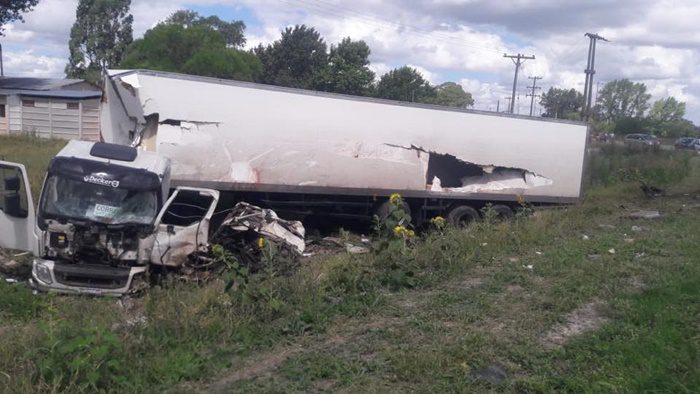 La magnitud del impacto entre ambos rodados de carga implicó que un camión de pequeño porte -conducido por la persona que falleció- fuera chocado por otro, con semirremolque.
