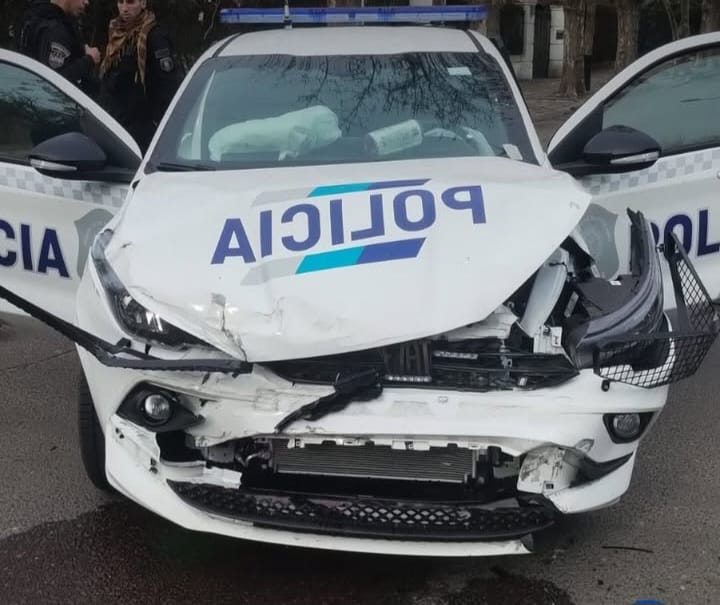 Dos policías resultaron con golpes leves tras chocar de frente contra una camioneta mientras escoltaban una ambulancia por una emergencia de salud. El hecho ocurrió en el cruce de Olavarría y Formosa, cuando el móvil —un Fiat Cronos recientemente incorporado— impactó violentamente contra una Ford Ranger.