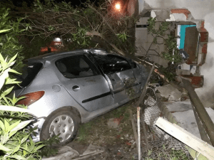 Tras romper el paredón, el vehículo dio contra una arboleda y la arrasó, rompiendo lo que había a su paso.
