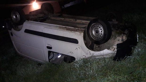 El hecho se registró poco después de las once de la noche del martes cuando el rodado Renault Kangoo en el que se desplazaban dos oficiales terminó volcado a la altura del ingreso al Parque Industrial por circunstancias que aún no fueron establecidas.