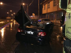 Mientras la mañana y la lluvia avanzaban, en el lugar aún permanecía el Toyota Corolla patente FQB 755, dejando expuesta la destrucción de toda su estructura producto de los fuertes impactos recibidos que pudieron tener consecuencias mucho más graves para la totalidad de sus ocupantes.
