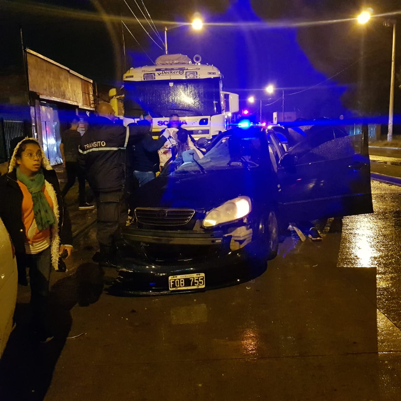 Un Toyota Corolla con seis ocupantes en su interior transitaba por la mencionada avenida en dirección a 98, cuando por causas que se tratan de establecer primero colisionó de manera violenta contra un camión Scania estacionado e inmediatamente después sucedió lo propio con un vehículo remis Chevrolet Corsa de color blanco que se encontraba esperando a una pasajera.