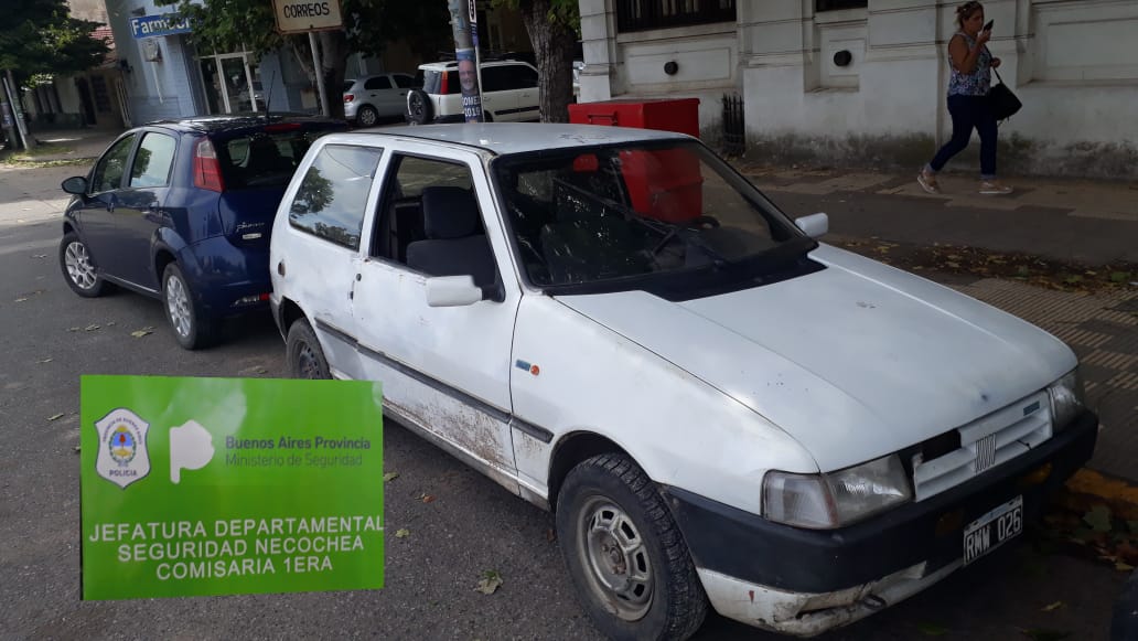 Personal de la Seccional Primera y del Comando de Patrullas en la zona de calles 73 y 94 hallaron un automóvil sin ocupantes y en aparente estado de abandono. Se trataba de un vehículo marca Fiat Uno, blanco, dominio RMW 026. El sistema informático de la Policía bonaerense señaló que el rodado no tenía ningún impedimento legal para transitar. Ahora se trata de establecer su propietario. En el lugar personal de Policía Científica efectuó las pericias de rigor correspondientes. Se procedió al secuestro de la unidad y al traslado a la Seccional Primera por razones de jurisdicción.-