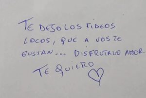 El descubrimiento fue hecho por dos policías que chequeaban las bolsas y los regalos de las visitas a los presos. Cuando llegó el envoltorio de la mujer, se encontraron con un paquete de pastas y un mensaje escrito que decía: “Te dejo los fideos locos que a vos te gustan… disfrutalos, amor. Te quiero”.