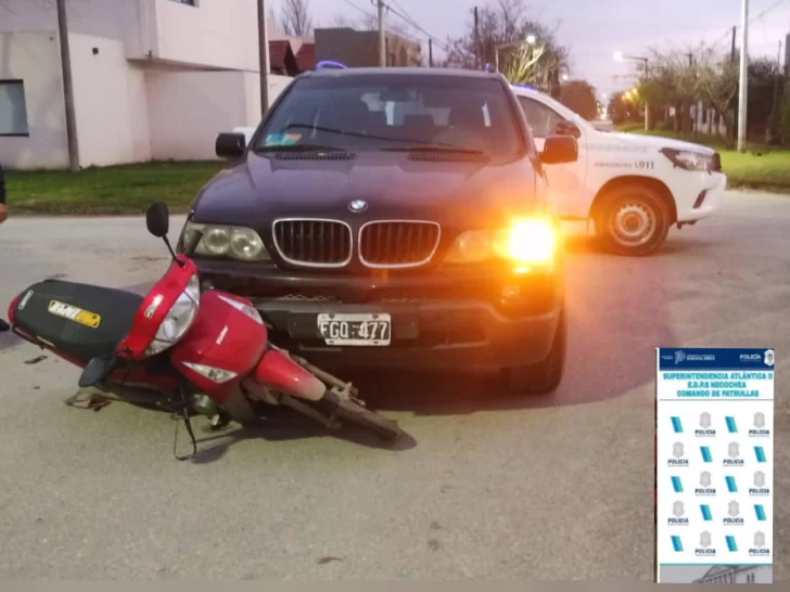 En el sitio, se constató la colisión entre un automóvil marca BMW, modelo X53.01, conducido por una mujer de 56 años, y una motocicleta marca Keller, modelo KN110-8, guiada por un hombre de 37 años.