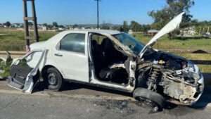 Según contaron testigos, un camión y un automóvil circulaban en sentido hacia el casco urbano de nuestra ciudad, cuando el vehículo de menor porte intentó adelantarse por la banquina. Metros más adelante, se encontró sin espacio, encerrado entre el camión y el guardarrail, contra el que terminó impactando.
