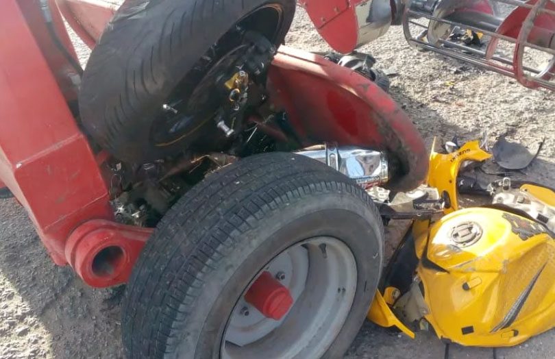 El siniestro ocurrió este sábado a la tarde, cuando por motivos que son materia de investigación, una moto Suzuki GSX R1000 a alta velocidad colisionó contra la pesada maquinaria agrícola, oriunda de Balcarce.