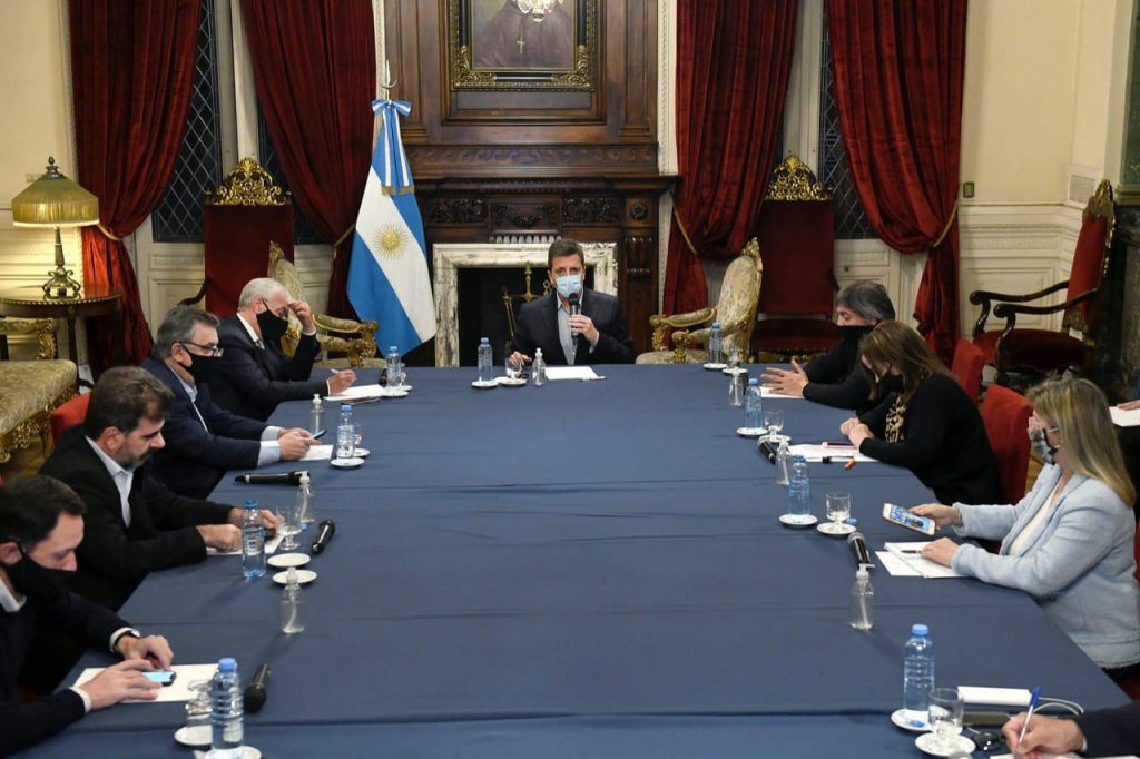Participaron del encuentro, en el Salón de Honor de Diputados en forma presencial, los oficialistas Máximo Kirchner; Cecilia Moreau y Cristina Alvarez Rodriguez y sus colegas de Juntos por el Cambio Mario Negri, Cristian Ritondo, Maximiliano Ferraro, Alvaro González, Juan Manuel López y Silvia Lospenatto,