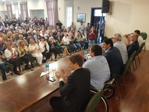 El subsecretario de asuntos municipales, Alex Campbell llevó el saludo de la gobernadora María Eugenia Vidal, felicitando a Ansaloni, por su nuevo cargo de presidente del Partido Fe.