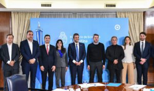 El ministro de Economía de la Nación y su par de Turismo y Deportes, junto al secretario de Comercio, Matías Tombolini, firmaron un acuerdo con las entidades representantes del sector privado