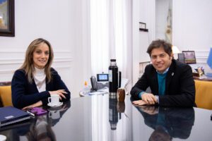 El gobernador de la provincia de Buenos Aires, Axel Kicillof, recibió este viernes en la Casa de Gobierno a la presidenta de AySA, Malena Galmarini para analizar el estado de las obras que lleva adelante la empresa en la Provincia.