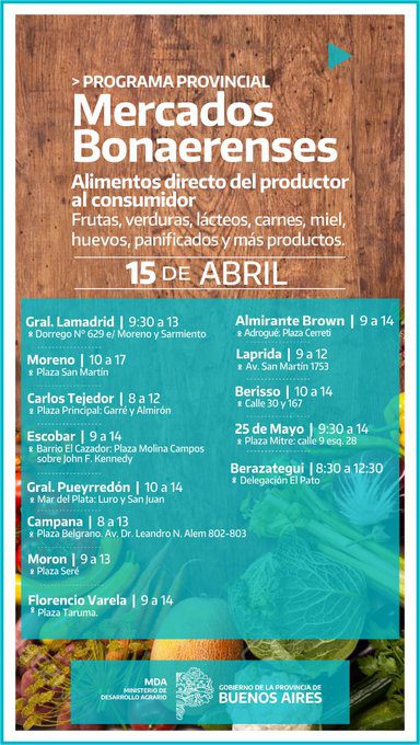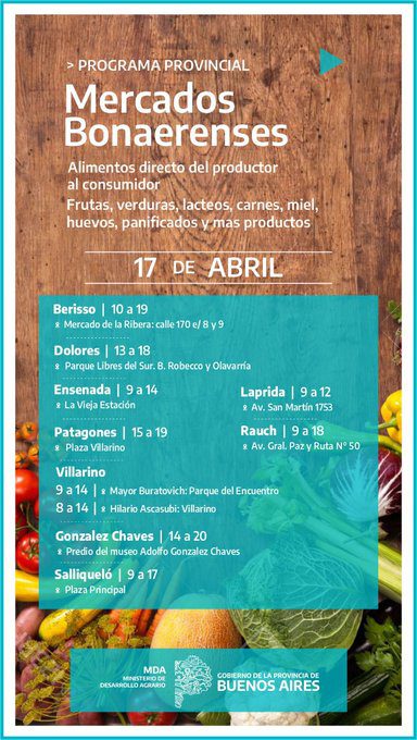 El programa cuenta también con una aplicación, “Mercados bonaerenses”, que permite conocer cuál es la feria más cercana y también posibilita vincularse, en algunos casos, con los productores que tengan venta directa a precios mayoristas.