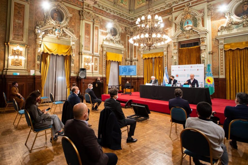 El gobernador de la provincia de Buenos Aires, Axel Kicillof, encabezó este jueves la firma de un acuerdo para la entrega de equipamiento médico a clínicas privadas y la ampliación del Programa Sumar, junto a los ministros de Salud de la Nación, Ginés González García, y de la Provincia, Daniel Gollan.