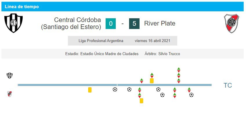 No hay dudas de que el estadio Madre de Ciudades le sienta bien al River Plate de Marcelo Gallardo. En ese escenario el Millonario le ganó por 5-0 a Racing y se quedó con la Supercopa Argentina hace menos de dos meses. Esta noche, ya por la décima fecha de la Copa de la Liga, el resultado se repitió: los de Marcelo Gallardo le hicieron cinco goles a Central Córdoba de Santiago del Estero y se quedaron con una victoria clave para acomodarse en la tabla de la Zona 1.