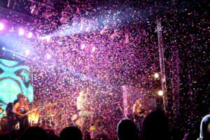 Los festejos siguieron sobre y debajo del escenario. La compañía “Phaway” brindó un show de primerísimo nivel, con gran puesta en escena, música en vivo y las acrobacias en la altura al ritmo de la banda. Intervenciones atrapantes, novedosas y cargadas de sorpresas que la multitud disfrutó hasta el último instante.