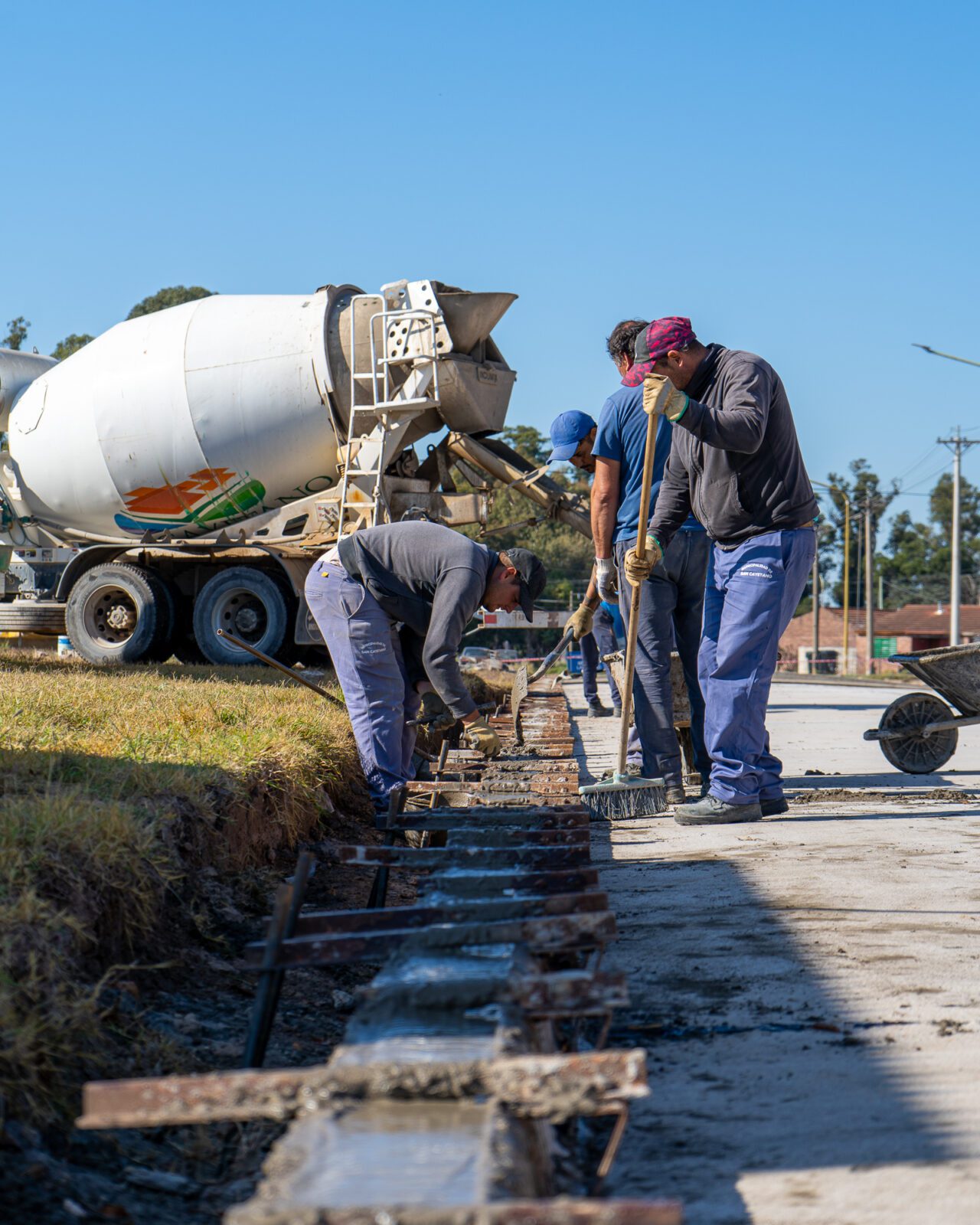 En ese momento el personal municipal se encontraba llenando con hormigón el sector del cordón cuneta de la primera cuadra que ya se ejecutó, es decir J. Fidersek entre Italia y España.