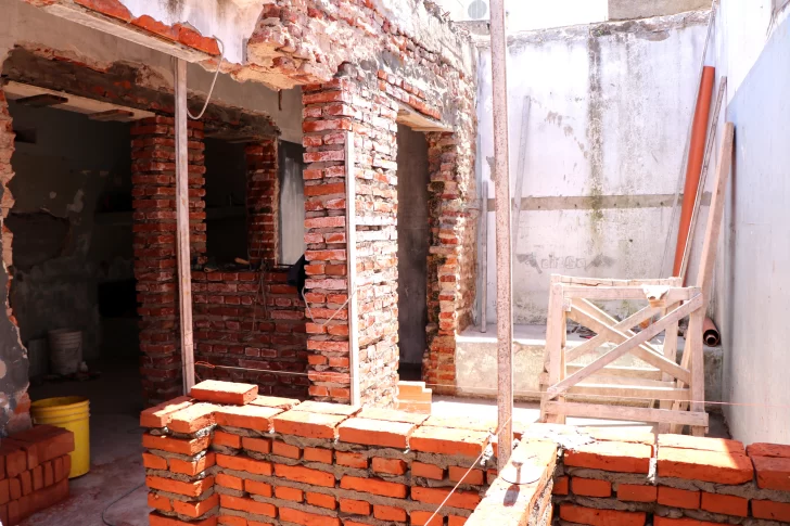 Se están ejecutando trabajos de albañilería y plomería, con demolición de lozas y mampostería que no formarán parte del nuevo proyecto. Simultáneamente se cumple con los trámites administrativos para la compra de aberturas y rejas.