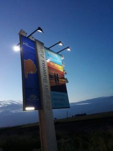 Continuando con las acciones de promoción y concientización sobre el cuidado del medio ambiente que impulsa el gobierno municipal, recientemente se iluminó el cartel ubicado en la intersección de la RP Nº 72 y el camino de acceso al Balneario local, mediante paneles solares.