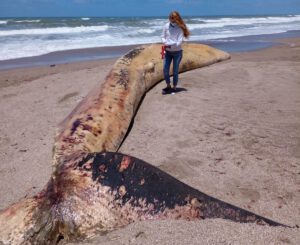 Se estima que se trata de una Ballena Sei Balaenoptera Borealis aunque todavía no está definido por los especialistas pertinentes.