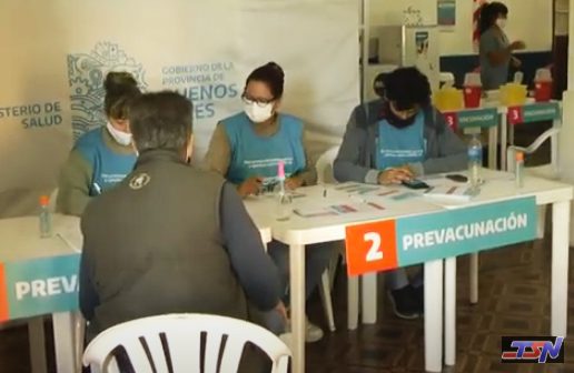 Doscientos vecinos pudieron inocularse ayer en el nuevo vacunatorio que funciona en el club Ministerio de Quequén.