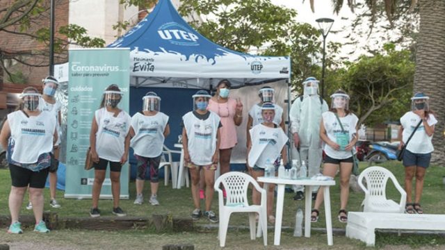Las Promotoras de Salud de la UTEP-Evita comenzaron a trabajar en la zona de la Villa Balnearia con distribución de barbijos gratuitos, alcohol en gel, información y con la desinfección de espacios públicos.