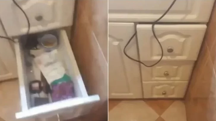 En la red social X, el internauta publicó un video en el que se abren solos los cajones del baño y cómo se ve que se tironea de un cable, pero no hay nadie en ese espacio que esté realizando esa acción.